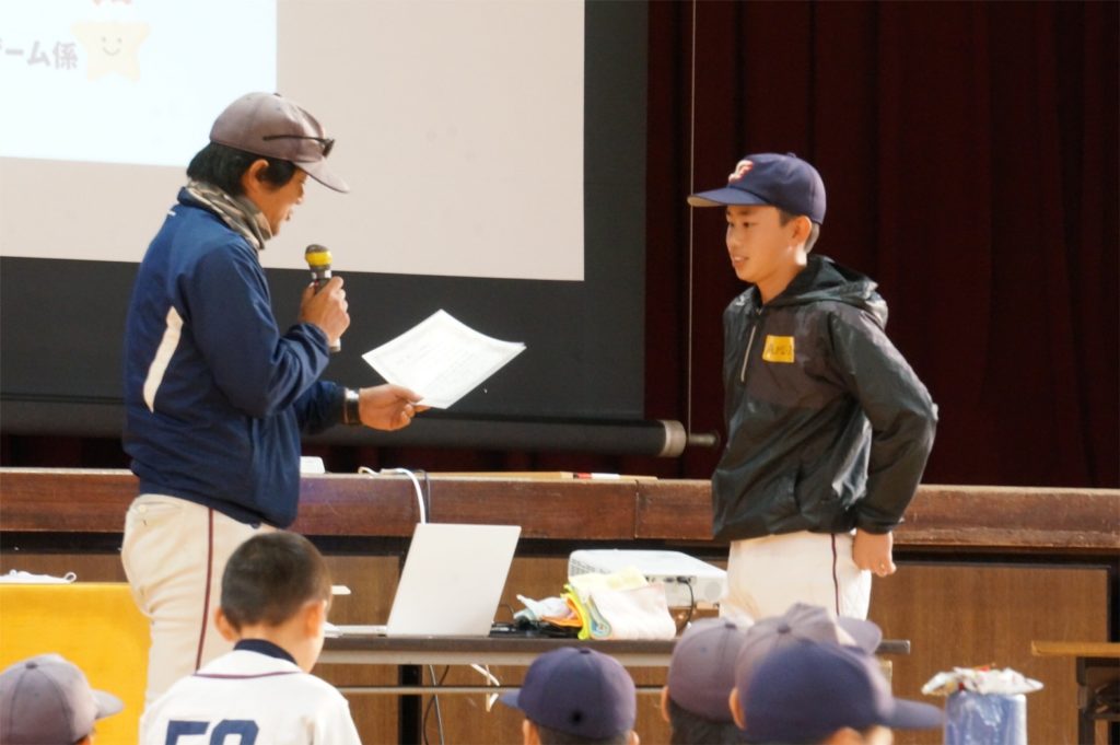 そんな中でのMVPには、技術面で一番伸びた選手が選ばれ、「これからも仲間と一緒に楽しく野球を続けてください。」という言葉が贈られました。